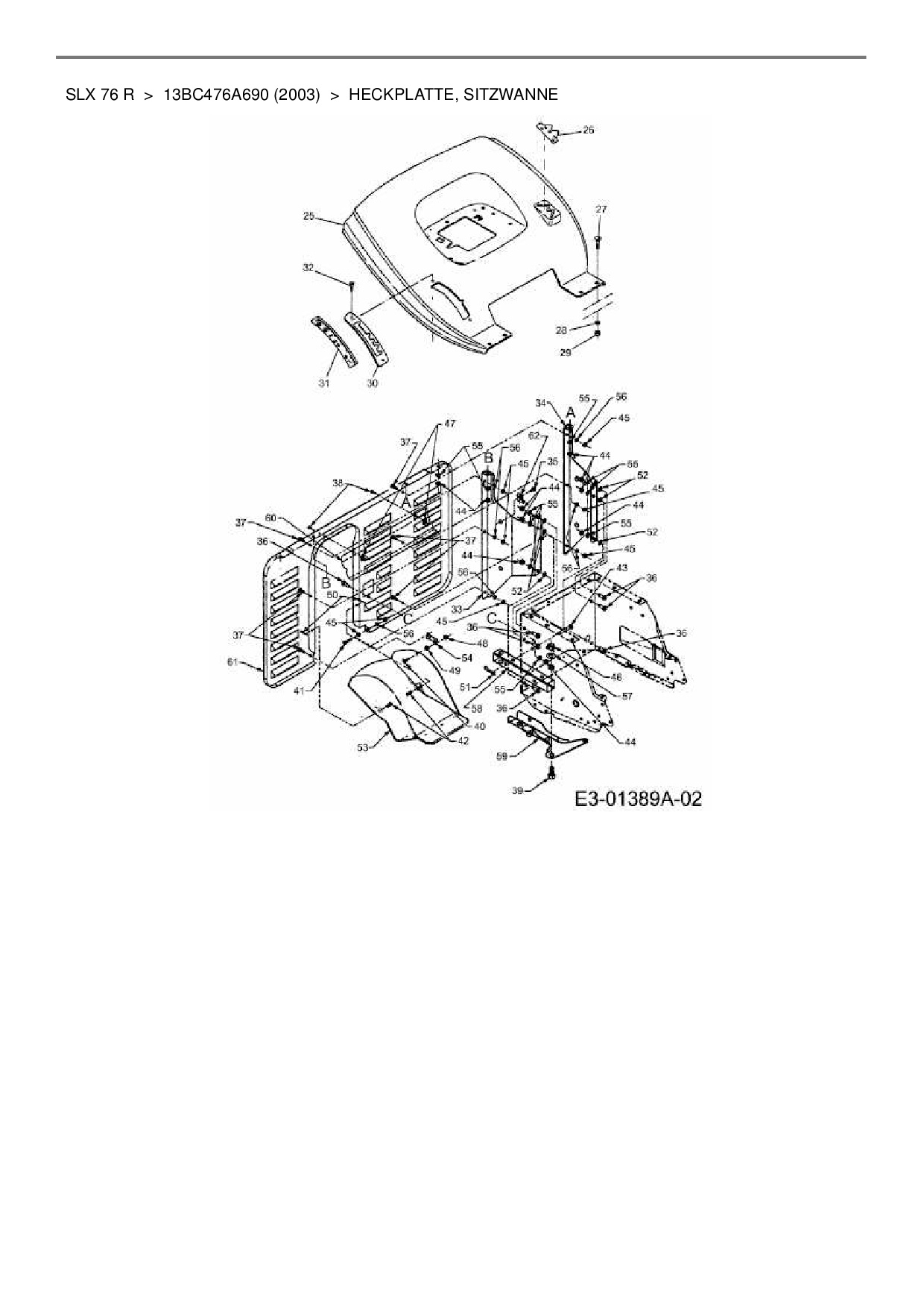 Ersatzteile für Rasentraktor Gutbrod SLX 76 R aus der Zeichnung Heckplatte, Sitzwanne: