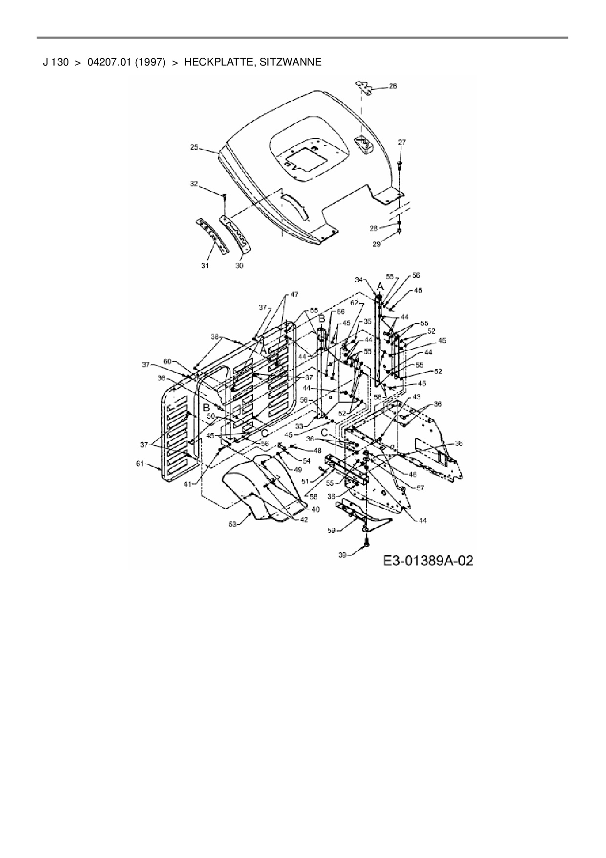 Ersatzteile für Rasentraktor MTD J 130 aus der Zeichnung Heckplatte, Sitzwanne: