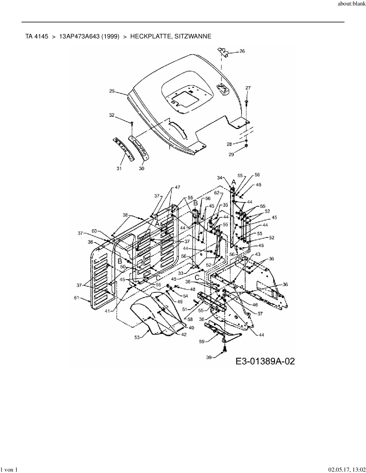 Ersatzteile für Rasentraktor Yard-Man TA 4145 aus der Zeichnung Heckplatte, Sitzwanne: