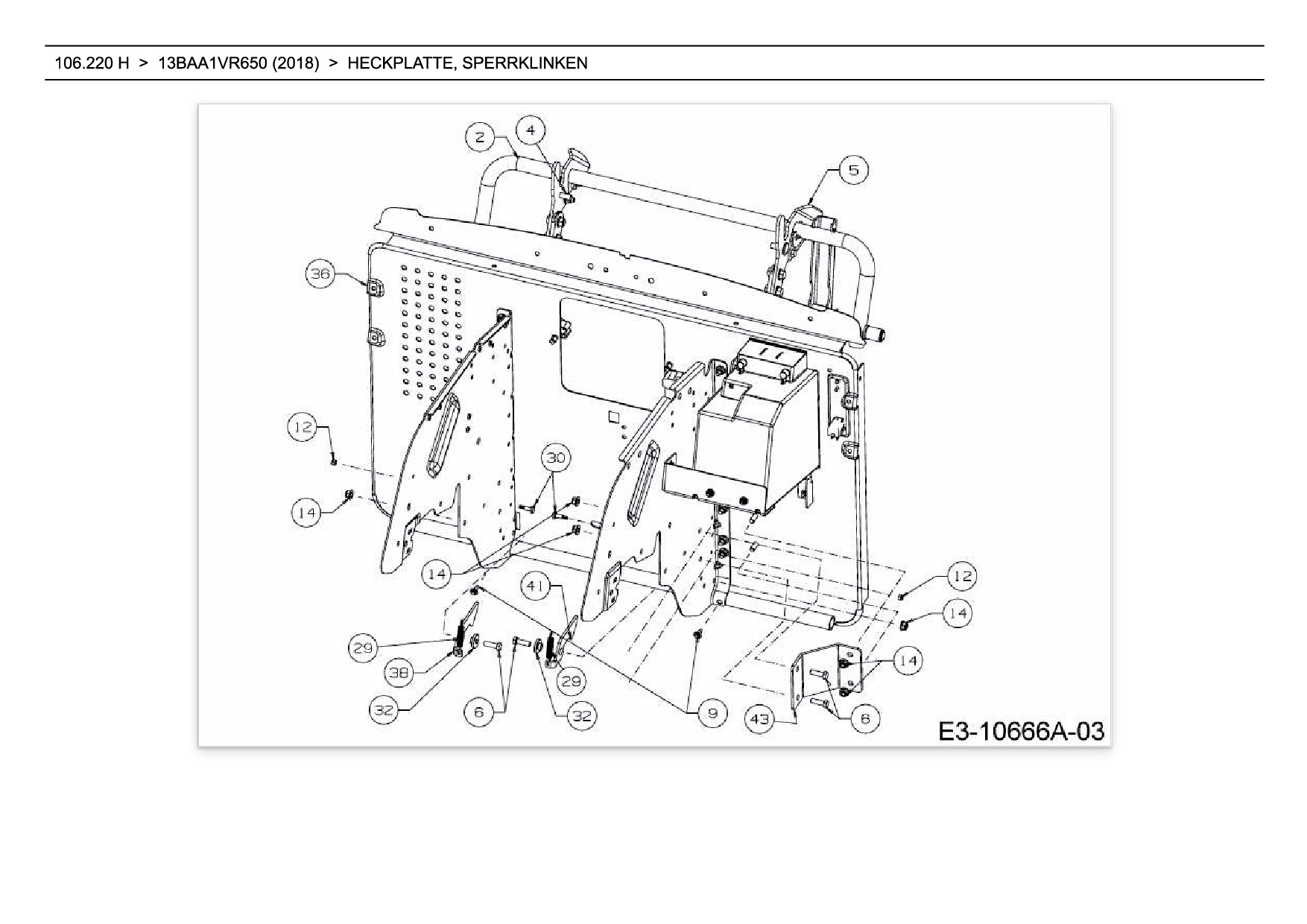 Ersatzteile für Rasentraktor Wolf-Garten Expert 106.220 H aus der Zeichnung Heckplatte, Sperrklinken: