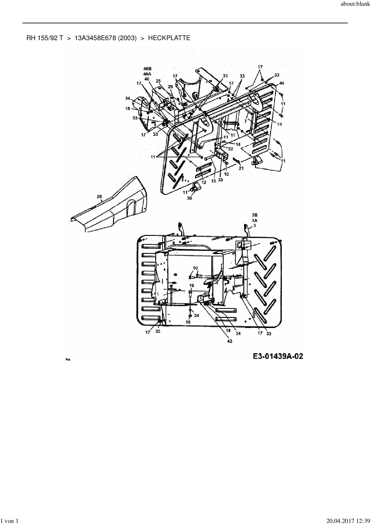 Ersatzteile für Rasentraktor MTD RH 155/92 T aus der Zeichnung Heckplatte:
