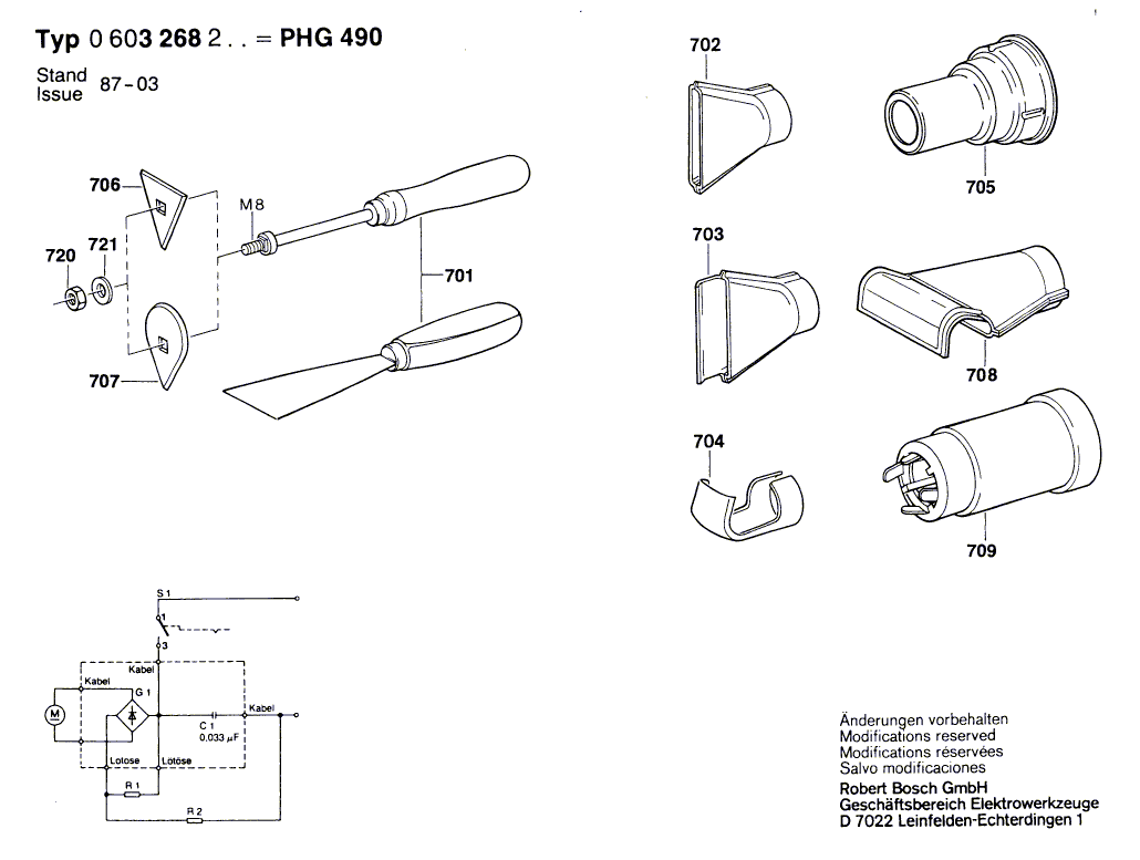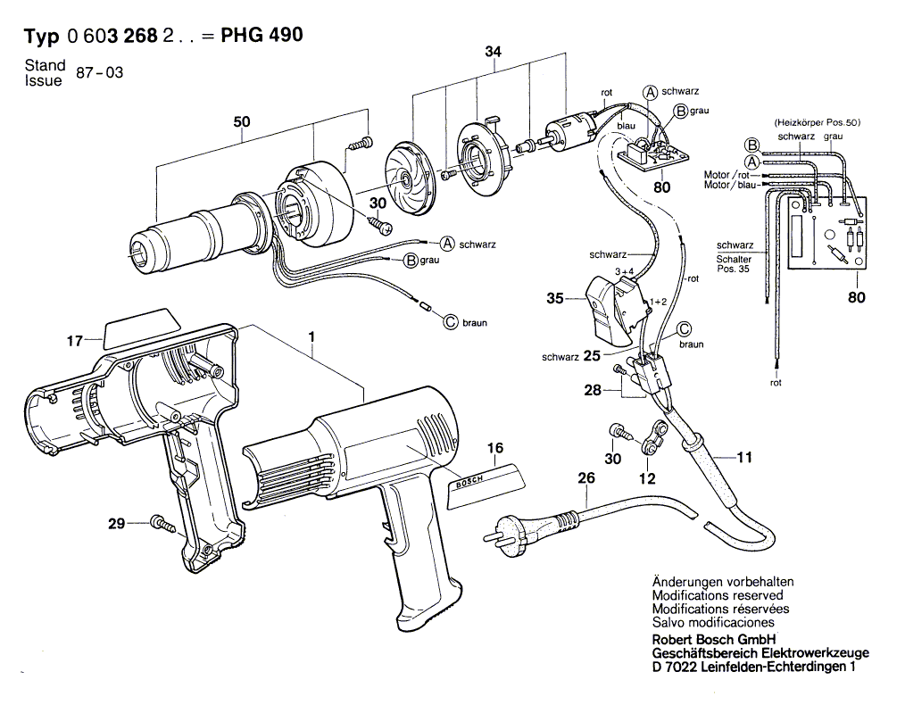 Zeichnungen von Bosch Heissluftgebläse PHG 490 mit der Geräte-Artikelnummer 0 603 268 203