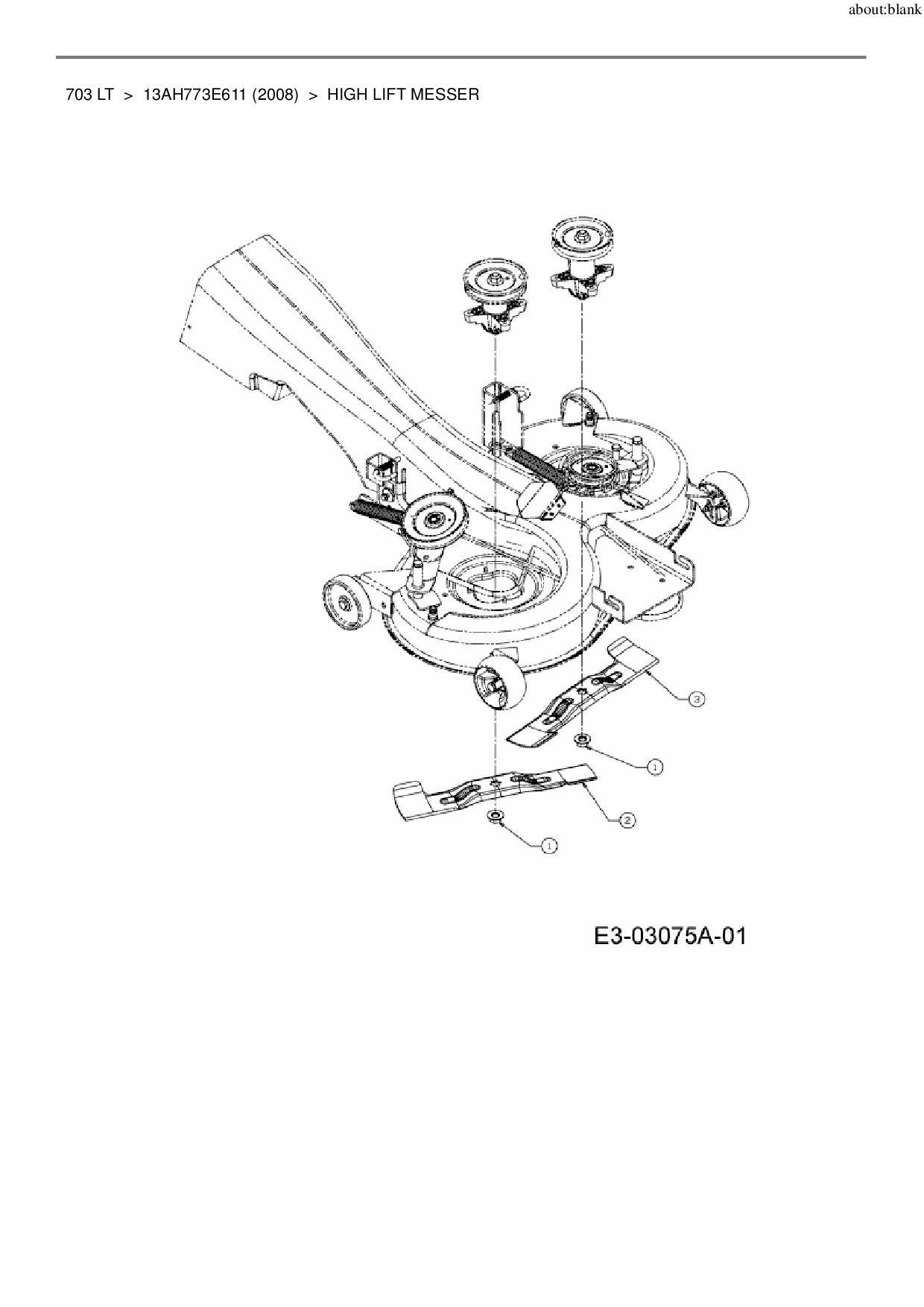 Ersatzteile für Rasentraktor Lawnflite 703 LT aus der Zeichnung High lift Messer: