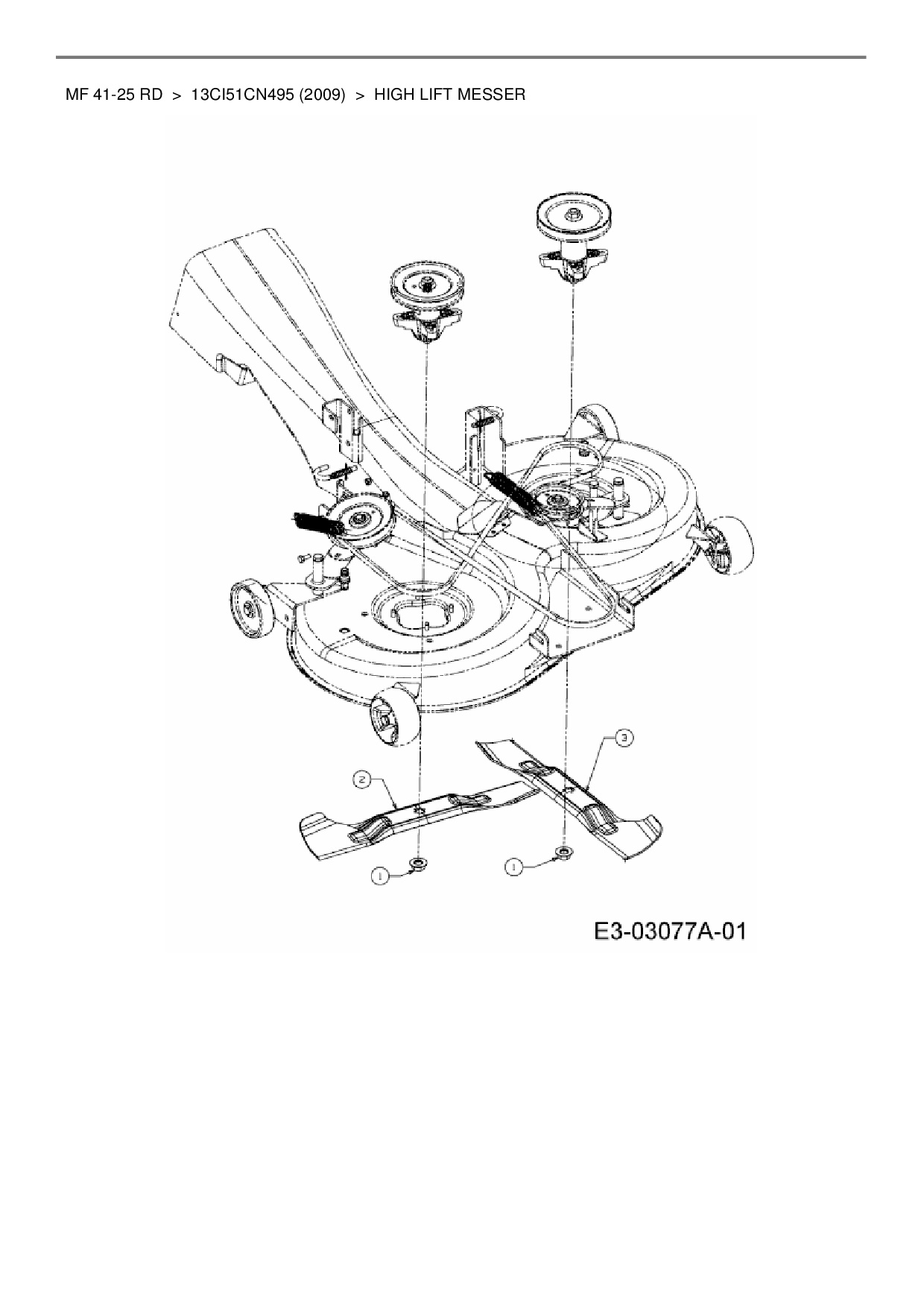 Ersatzteile für Rasentraktor Massey Ferguson MF 41-25 RD aus der Zeichnung High lift Messer: