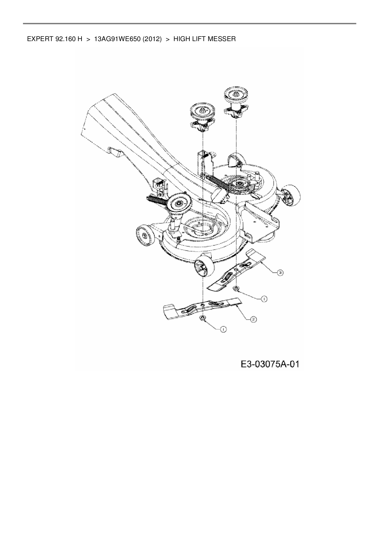 Ersatzteile für Rasentraktor Wolf-Garten Expert Expert 92.160 H aus der Zeichnung High lift Messer: