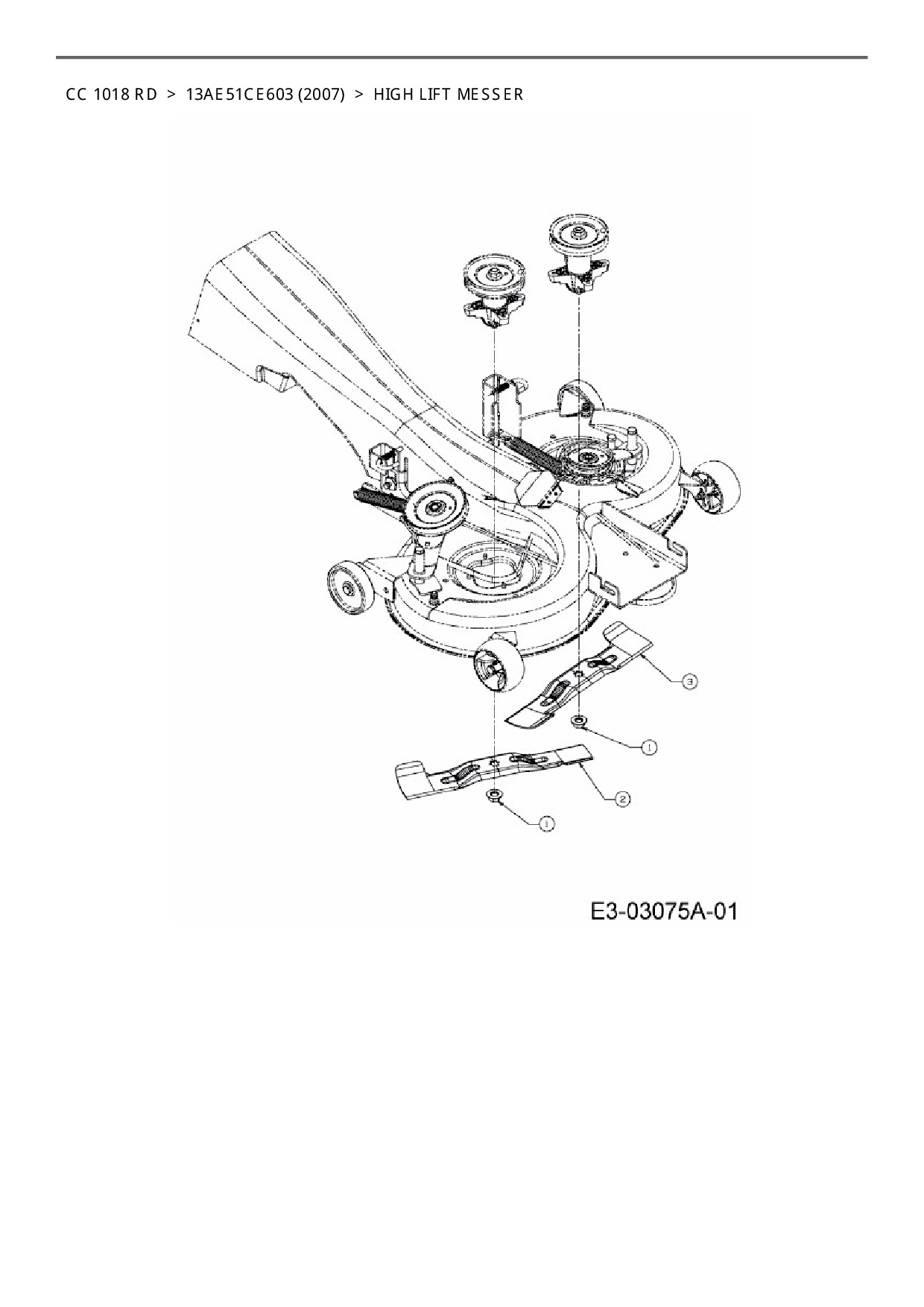 Ersatzteile für Rasentraktor Cub Cadet CC 1018 RD aus der Zeichnung High lift Messer: