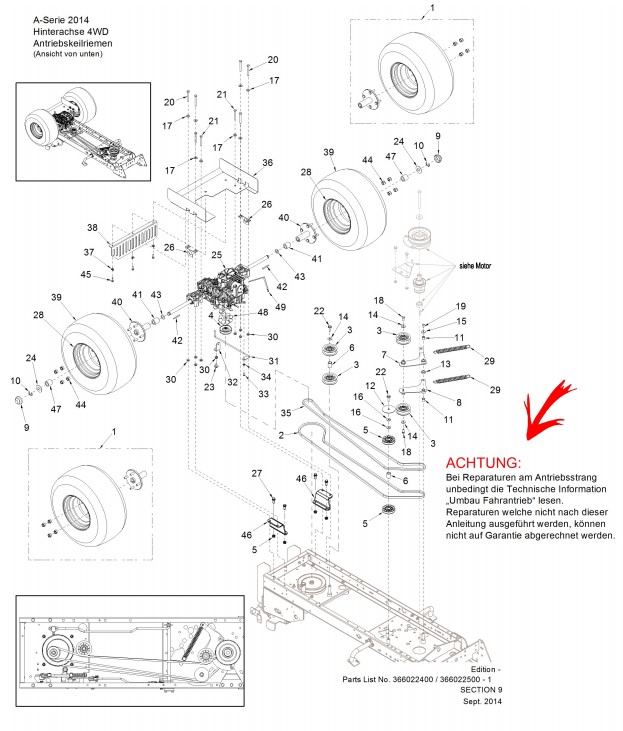 Hinterachse 4WD, Antriebskeilriemen bis März 2015