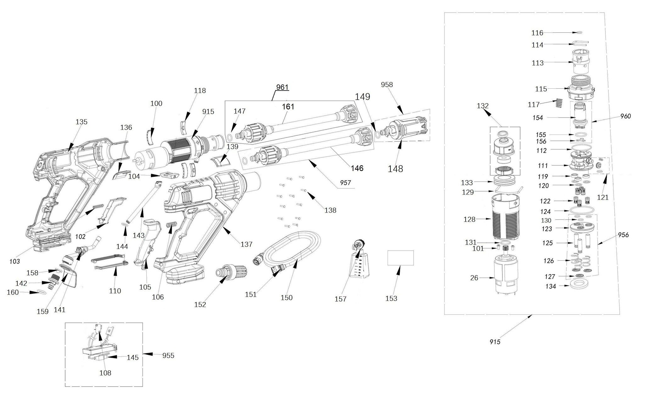 Folgende Ersatzteile für Einhell Hochdruckreiniger HYPRESSO 18/24 Li f.Kit,EX, NA ( 4140146 ) können Sie hier bestellen: