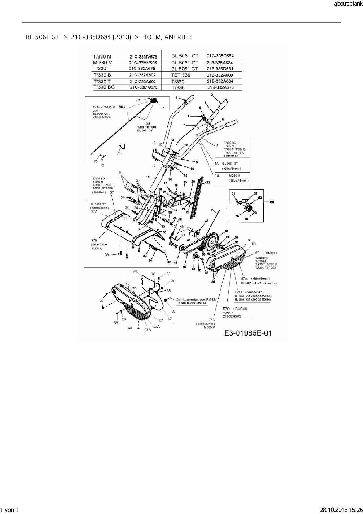 Zeichnung für Bolens Motorhacke BL 5061 GT mit der Geräte-Artikelnr. 21C-335D684 ab Baujahr 2010: