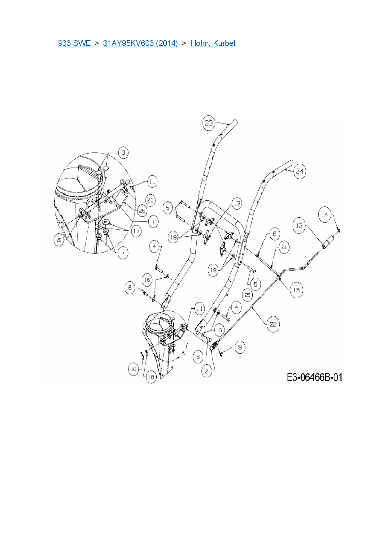 Download Ersatzteil-Zeichnung Cub Cadet 933 SWE Zeichnung Holm, Kurbel (PDF-Format)
