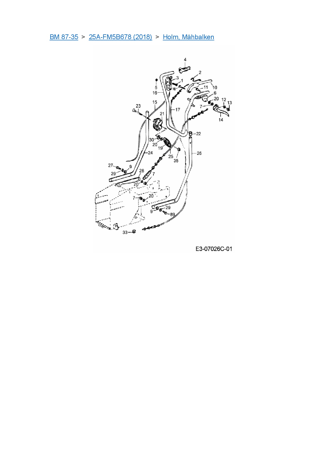 Download Ersatzteil-Zeichnung MTD BM 87-35 Zeichnung Holm, Mähbalken (PDF-Format)