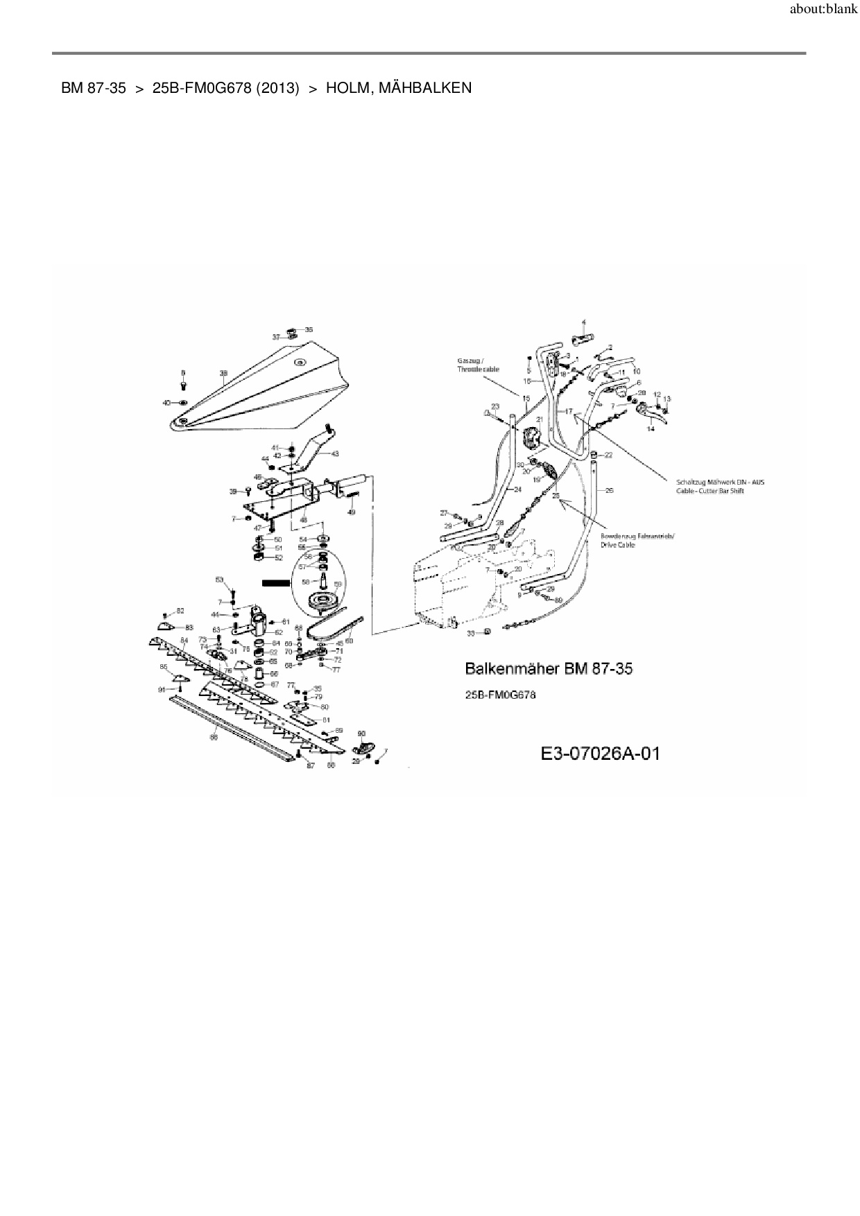 Zeichnung für MTD Balkenmäher BM 87-35 mit der Geräte-Artikelnr. 25B-FM0G678 ab Baujahr 2013: