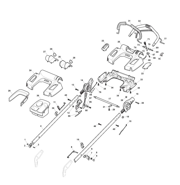 Hier finden Sie alle Ersatzteile von Castelgarden Benzinrasenmäher ab 2008 XSP 55 MGS 4 SILENT PLUS (ID 291573043/08) aus der Zeichnung Holm, Oberteil (2):