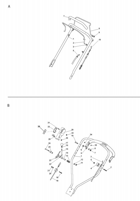 Hier finden Sie alle Ersatzteile von Stiga Benzin-Rasenmäher ab 2009 Multiclip 50 S (Geräte Nr 291502044/ST9) aus dem Zeichnungsblatt Holm Oberteil Bedienelemente (1):