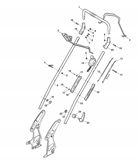 Hier finden Sie alle Ersatzteile von Stiga Benzin-Rasenmäher ab 2013 Excel 55 SQ B (Geräte Nr 290556021/S13) aus dem Zeichnungsblatt Holm, Oberteil: