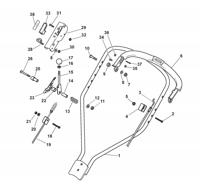 Hier finden Sie alle Ersatzteile von Stiga Benzin-Rasenmäher ab 2006 Multiclip 50 SE Rental (Geräte Nr 11-5698-51) aus dem Zeichnungsblatt Holm, Oberteil: