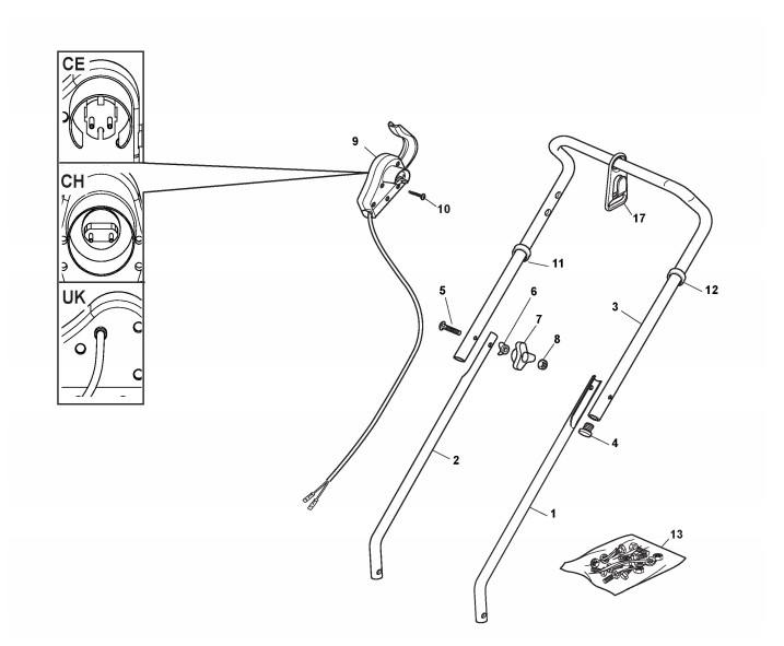 Hier finden Sie alle Ersatzteile von Stiga Elektro-Rasenmäher ab 2013 Collector 39 E (Geräte Nr 297391654/ST9) aus dem Zeichnungsblatt Holm, Oberteil: