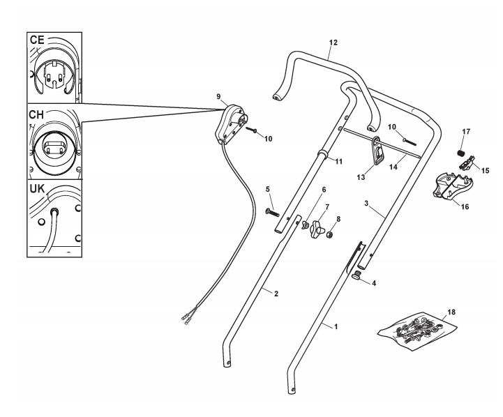 Hier finden Sie alle Ersatzteile von Stiga Elektro-Rasenmäher ab 2013 Turbo 35 EL (Geräte Nr 297351651/S11) aus dem Zeichnungsblatt Holm, Oberteil: