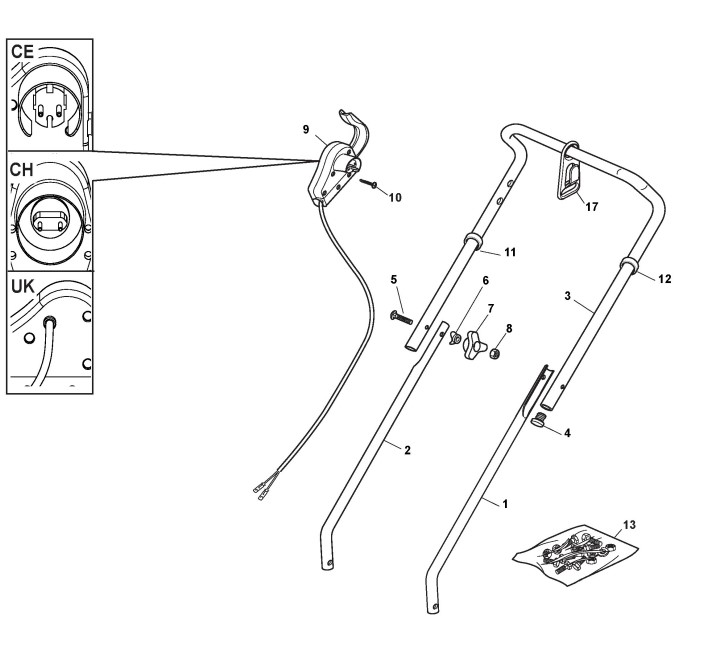 Hier finden Sie alle Ersatzteile von Castelgarden Elektrorasenmäher C 350 (Geräte ID 297351653/12) ab 2013 aus der Zeichnung Holm, Oberteil: