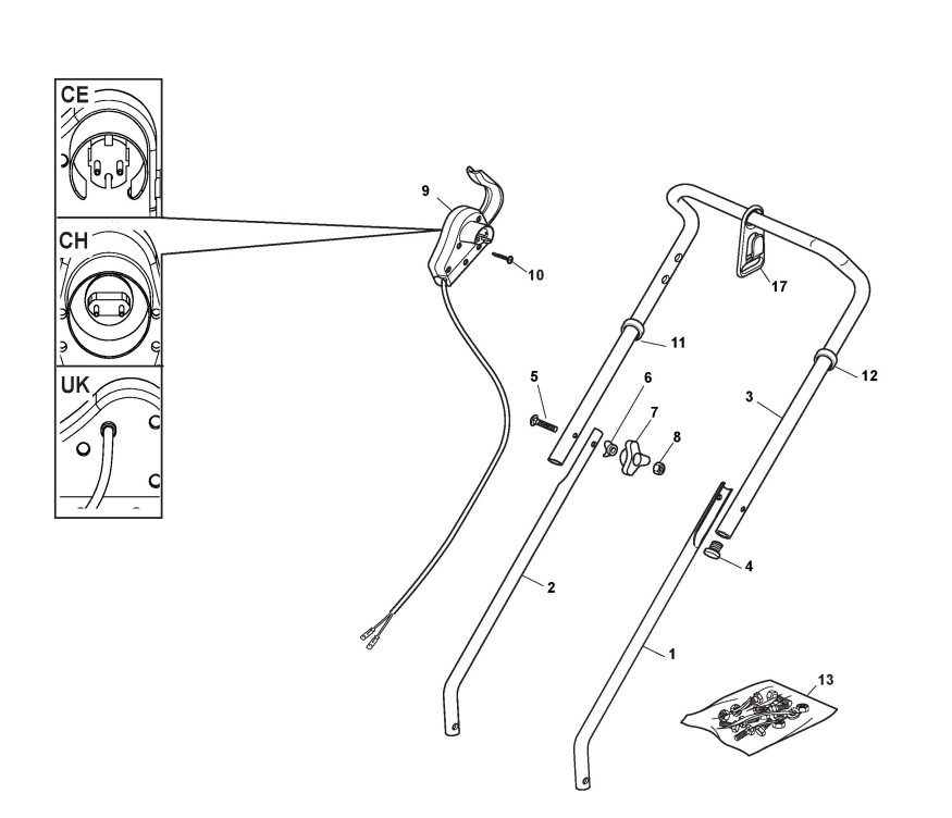 Hier finden Sie alle Ersatzteile von Castelgarden Elektrorasenmäher C 390 (Geräte ID 297392663/05) ab 2013 aus der Zeichnung Holm, Oberteil: