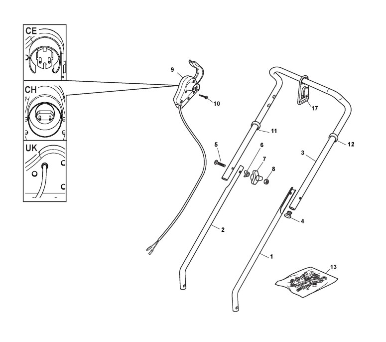 Hier finden Sie alle Ersatzteile von Castelgarden Elektrorasenmäher C 390 NEW GARDA (Geräte ID 297392663/OX) ab 2014 aus der Zeichnung Holm, Oberteil:
