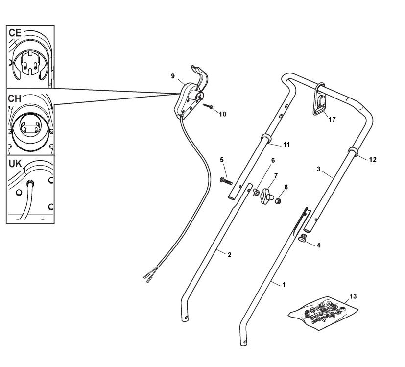 Hier finden Sie alle Ersatzteile von Castelgarden Elektrorasenmäher CS 350 (Geräte ID 297060003/OMA) ab 2011 aus der Zeichnung Holm, Oberteil:
