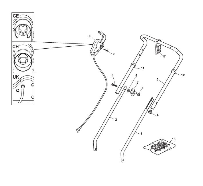 Hier finden Sie alle Ersatzteile von Castelgarden Elektrorasenmäher NG 390 K (Geräte ID 297407765/08) ab 2008 aus der Zeichnung Holm, Oberteil: