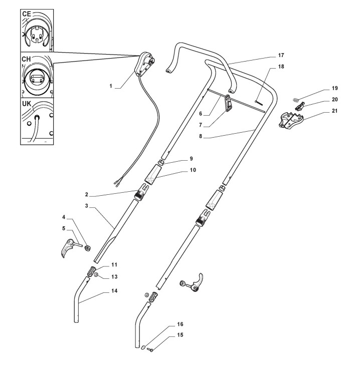 Hier finden Sie alle Ersatzteile von Castelgarden Elektrorasenmäher PRO 41 TE (Geräte ID 294410661/PRO) ab 2009 aus der Zeichnung Holm, Oberteil: