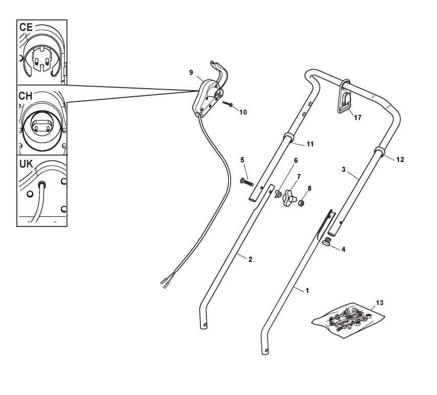 Hier finden Sie alle Ersatzteile von Castelgarden Elektrorasenmäher TD 350 (Geräte ID 297352653/06) ab 2008 aus der Zeichnung Holm, Oberteil: