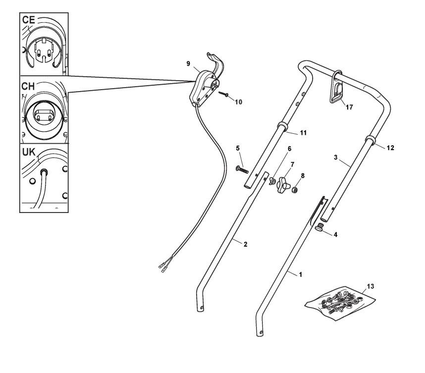 Hier finden Sie alle Ersatzteile von Castelgarden Elektrorasenmäher TD 350 (Geräte ID 297352657/06) ab 2010 aus der Zeichnung Holm, Oberteil: