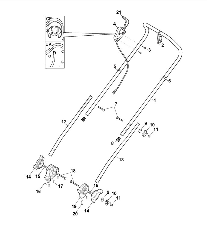 Hier finden Sie alle Ersatzteile von Castelgarden Elektrorasenmäher XP 42 E (Geräte ID 294420063/PAP) ab 2019 aus der Zeichnung Holm, Oberteil: