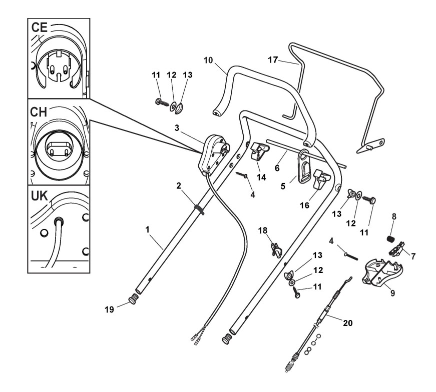 Hier finden Sie alle Ersatzteile von Castelgarden Elektrorasenmäher XS 50 ELS (Geräte ID 291485653/ABY) ab 2009 aus der Zeichnung Holm, Oberteil: