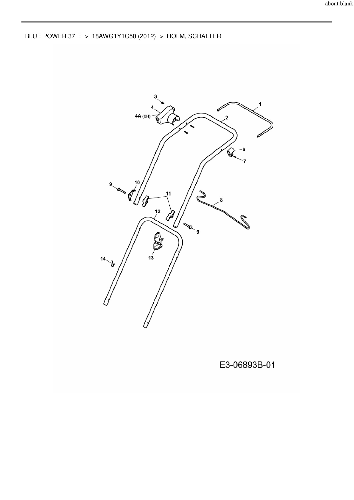 Ersatzteile für Elektromäher Wolf-Garten Blue Power 37 E aus der Zeichnung Holm, Schalter: