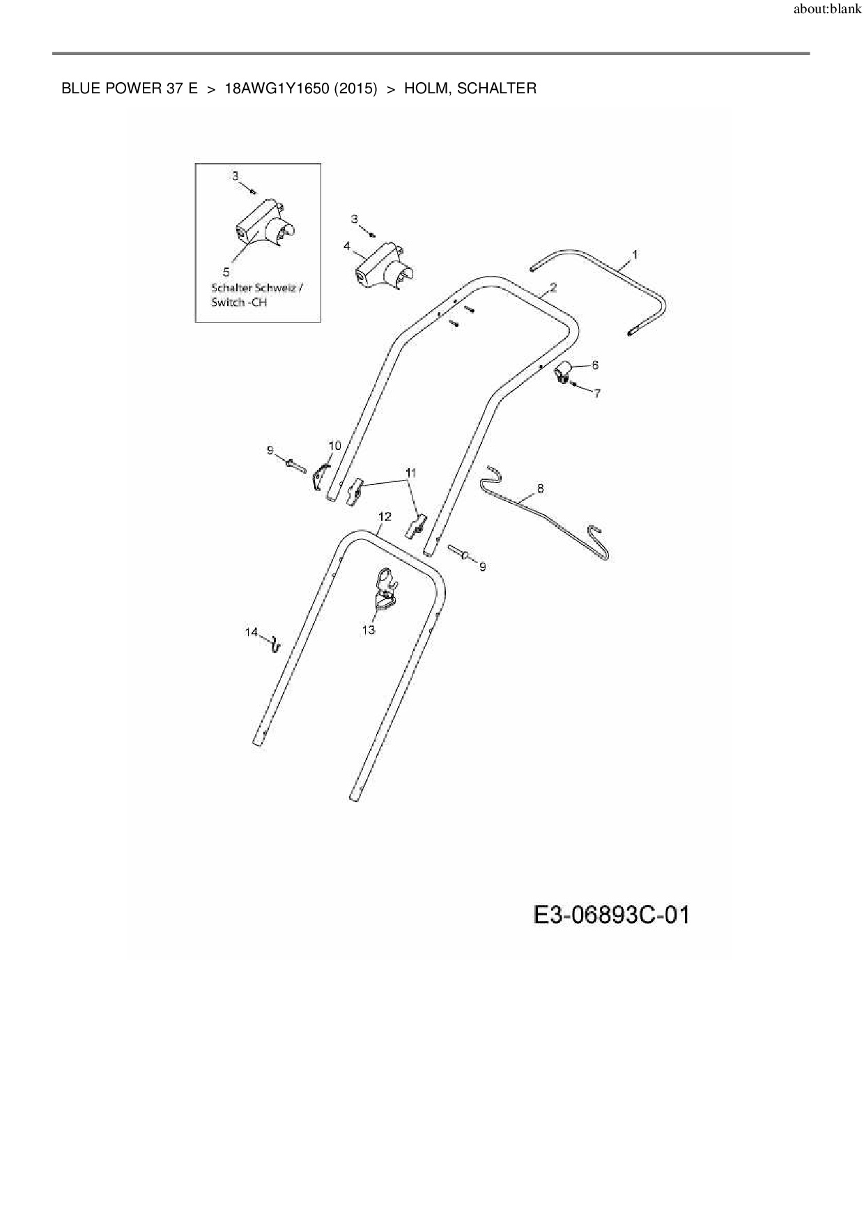 Ersatzteile für Elektromäher Wolf-Garten Blue Power 37 E aus der Zeichnung Holm, Schalter: