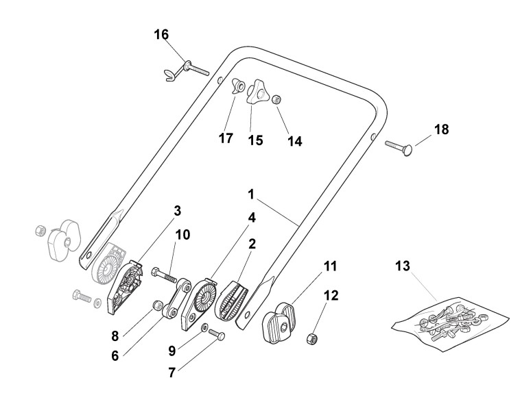 Hier finden Sie alle Ersatzteile von Stiga Benzin-Rasenmäher ab 2005 46 HP (Geräte Nr 294484121/STG) aus dem Zeichnungsblatt Holm, Unterteil: