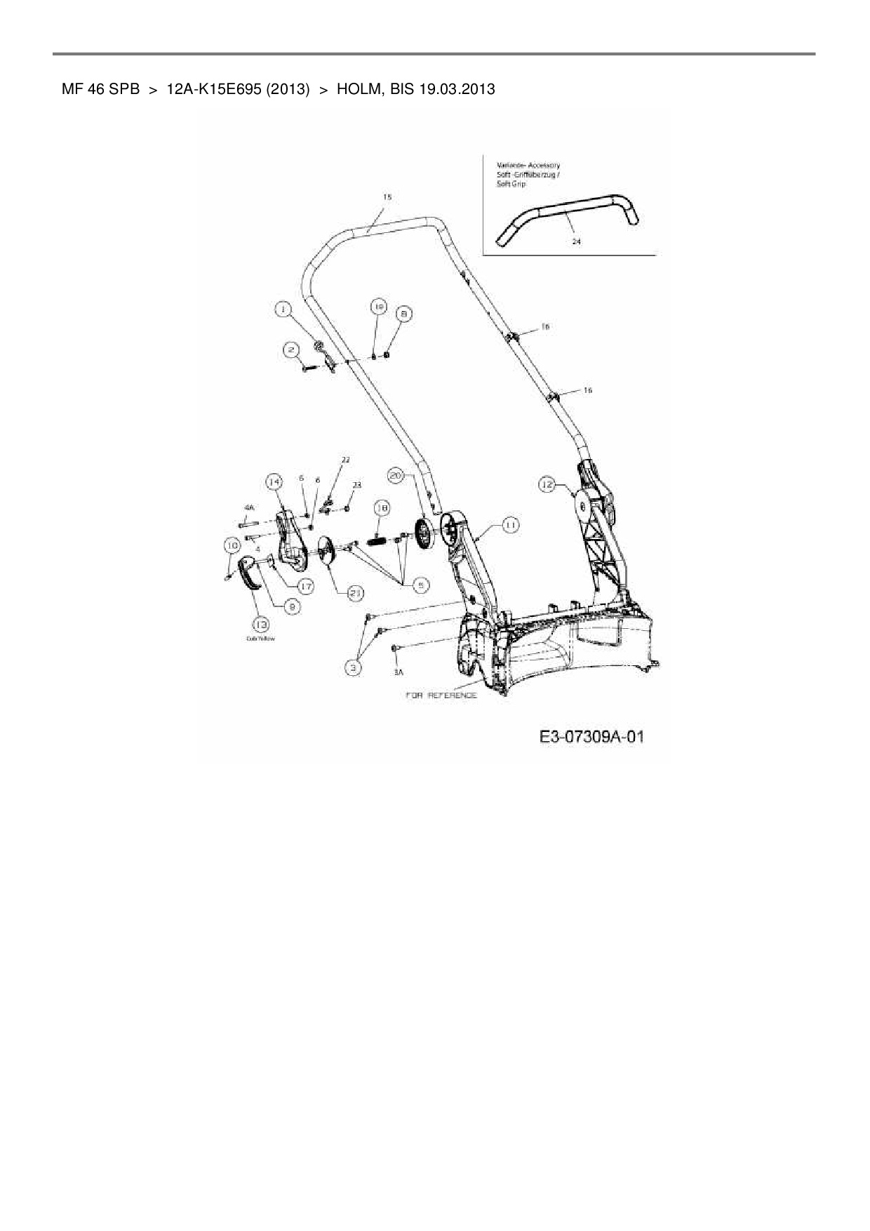 Ersatzteile für Motormäher mit Antrieb Massey Ferguson MF 46 SPB aus der Zeichnung Holm, bis 19.03.2013: