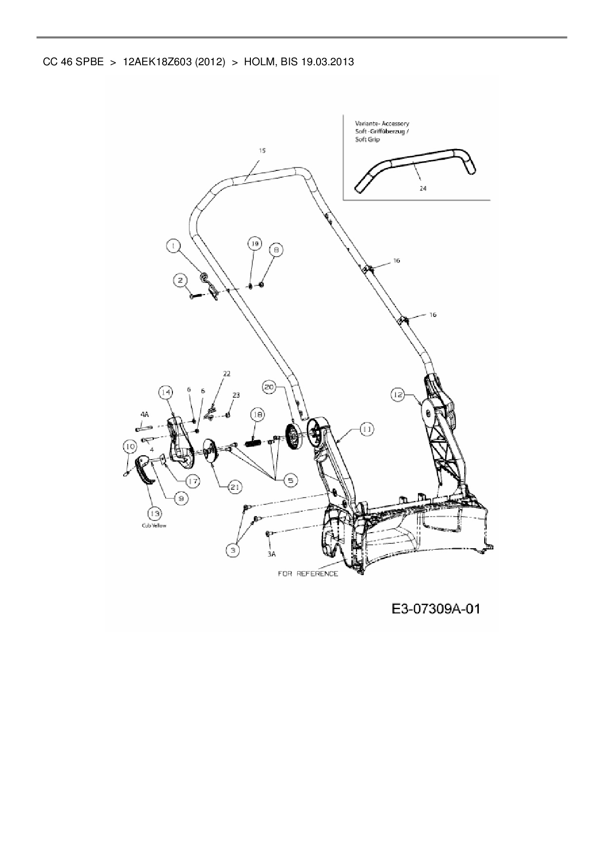 Ersatzteile für Motormäher mit Antrieb Cub Cadet CC 46 SPBE aus der Zeichnung Holm, bis 19.03.2013: