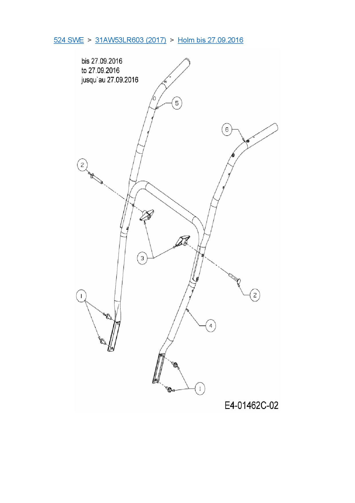 Ersatzteile für Schneefräse Cub Cadet 524 SWE aus der Zeichnung Holm bis 27.09.2016: