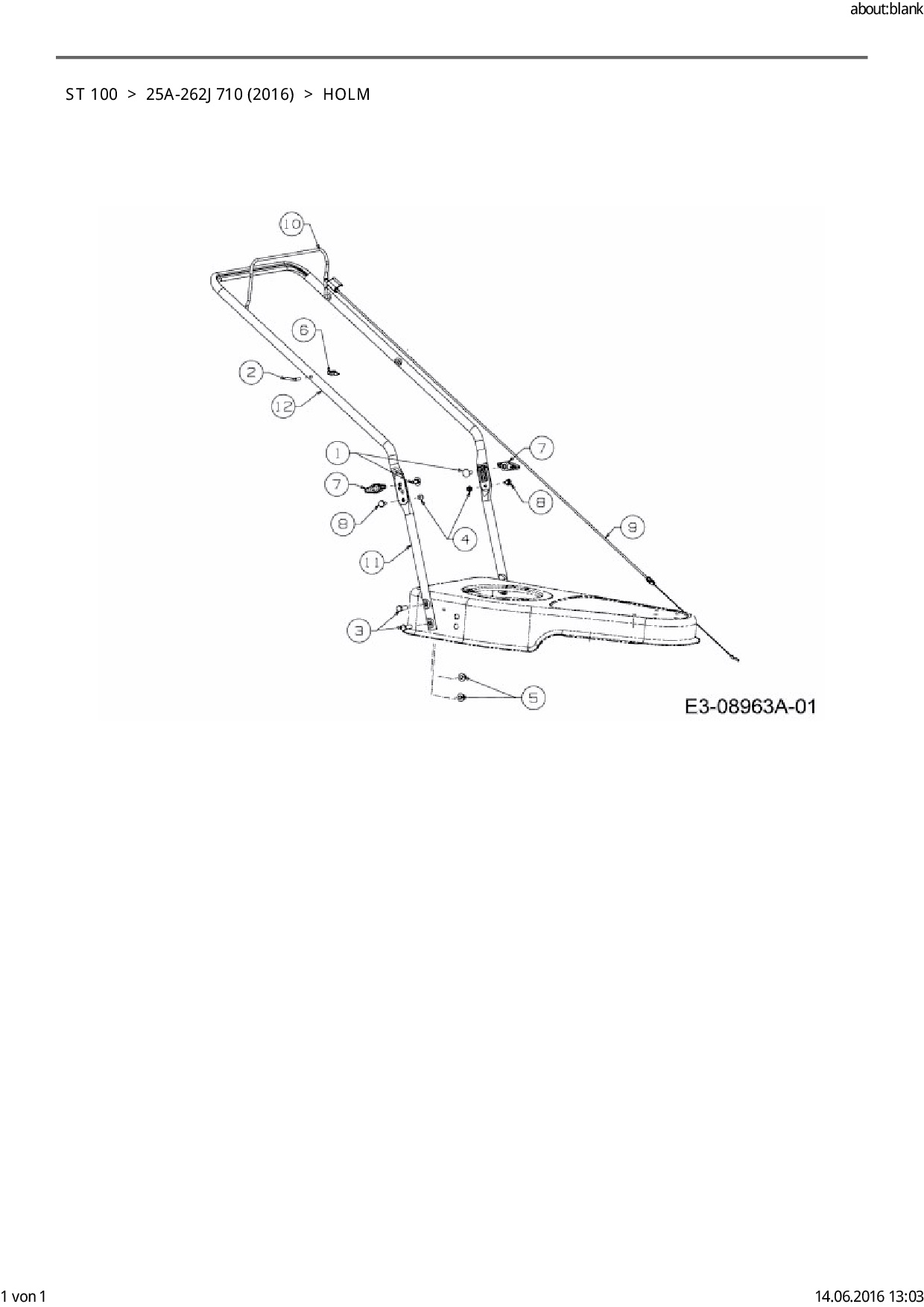Ersatzteile für Motorfadenmäher Cub Cadet ST 100 aus der Zeichnung Holm: