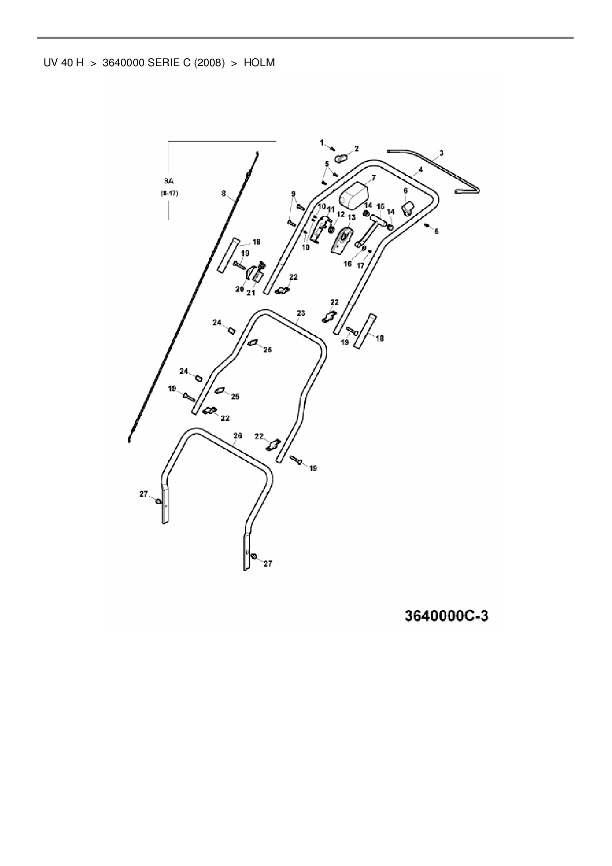 Zeichnung für Wolf-Garten Motorvertikutierer UV 40 H mit der Geräte-Artikelnr. 3640000 Serie C ab Baujahr 2008: