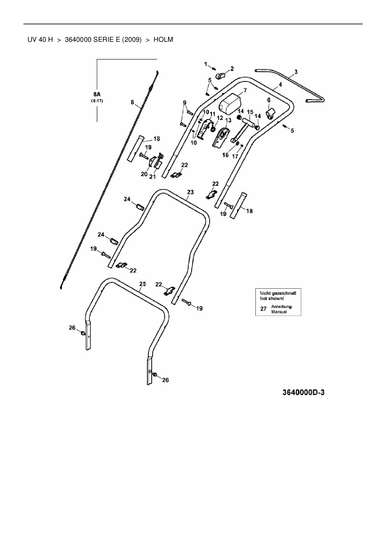 Zeichnung für Wolf-Garten Motorvertikutierer UV 40 H mit der Geräte-Artikelnr. 3640000 Serie E ab Baujahr 2009:
