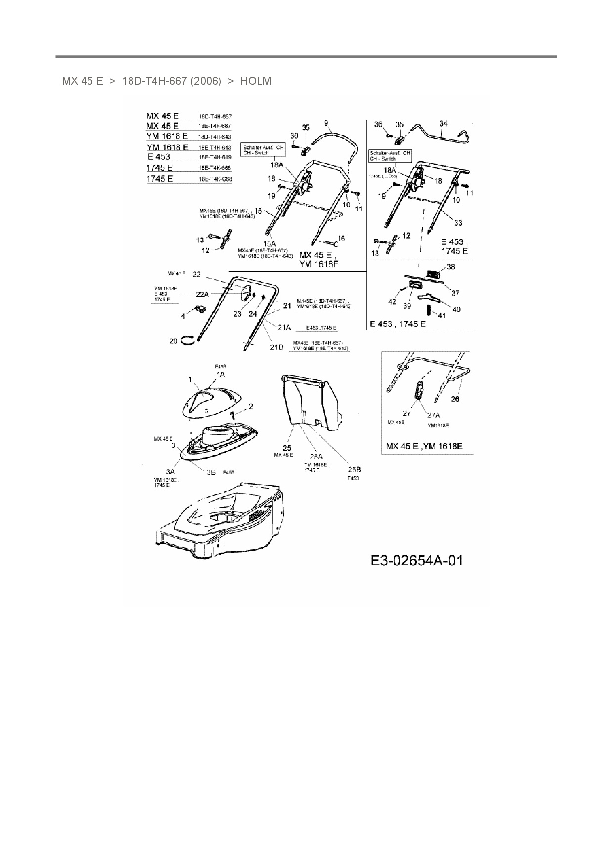 Ersatzteile für Elektromäher Merox MX 45 E aus der Zeichnung Holm: