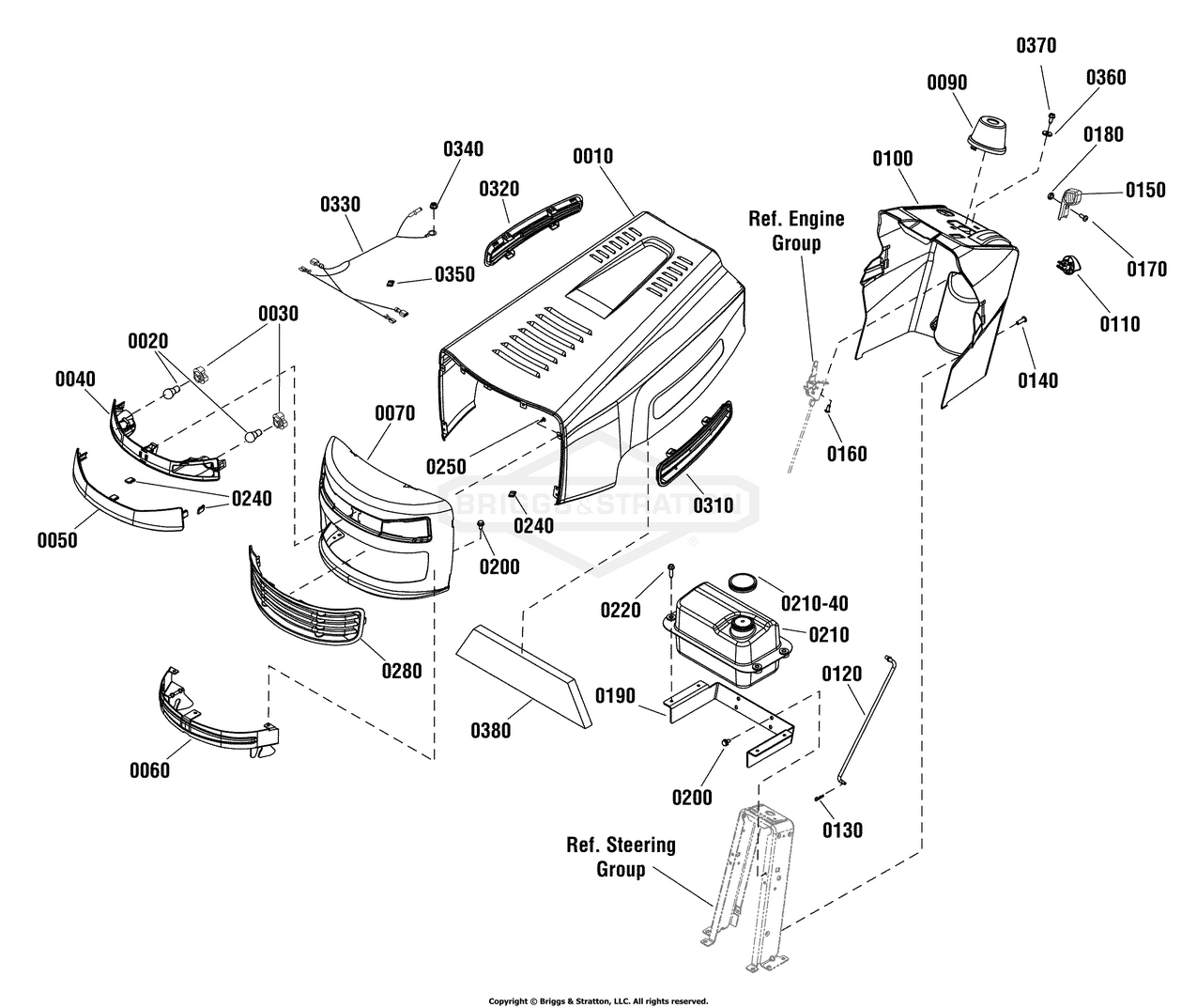 Zeichnung Snapper 2691044 - ELT175420, 42" 17.5 HP Hydro Drive Euro Tractor aus der Zeichnungsgruppe Hood, Grille & Dash Group: