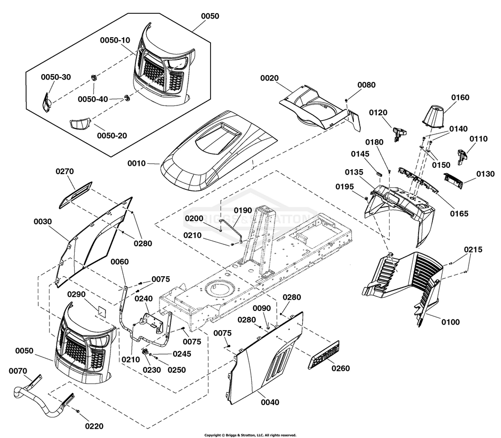 Zeichnung Snapper 2691488-00 - SPX210, 46" (117cm) 17.5 Gross HP ESPX Lawn Tractor 200 Series aus der Zeichnungsgruppe Hood, Grille & Dash Group: