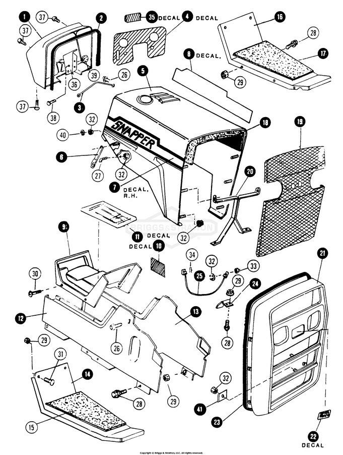 Zeichnung Snapper 80124 - 1600A, 16 HP Gear Drive Garden Tractor (MF) aus der Zeichnungsgruppe Hood, Grille, Side Panels:
