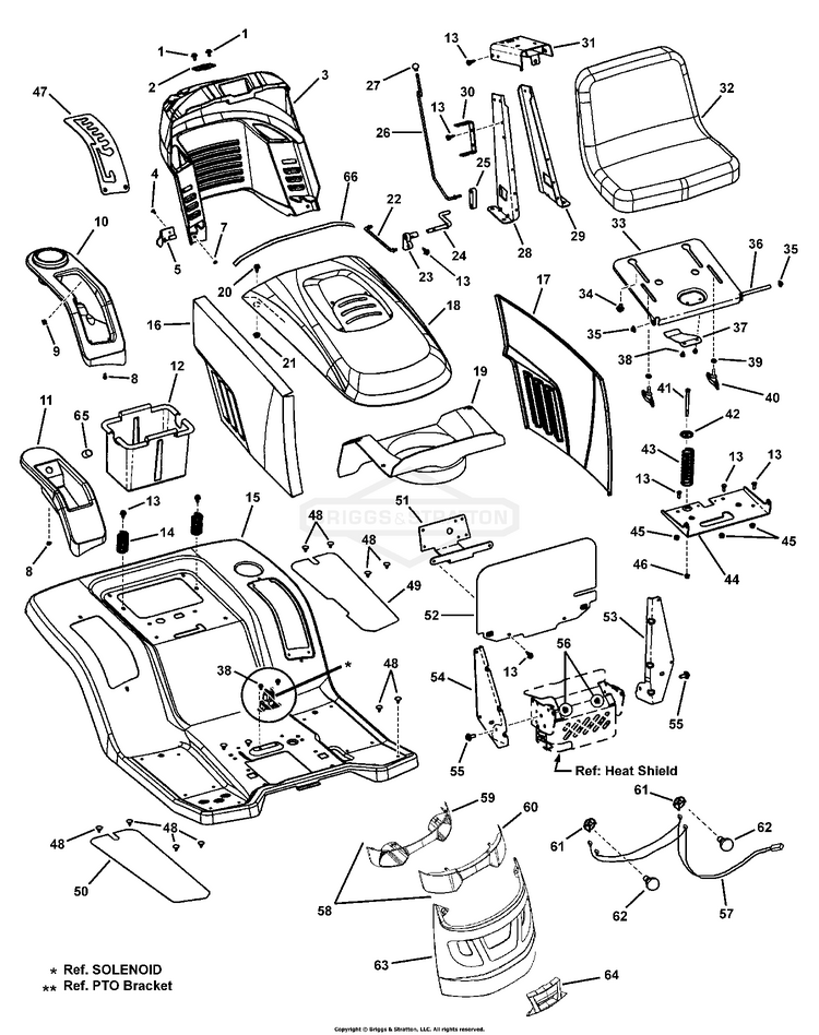Zeichnung Snapper 7800342 - SLT23460, 46" 23HP Lawn Tractor LT100 Series aus der Zeichnungsgruppe Hood / Seat Group:
