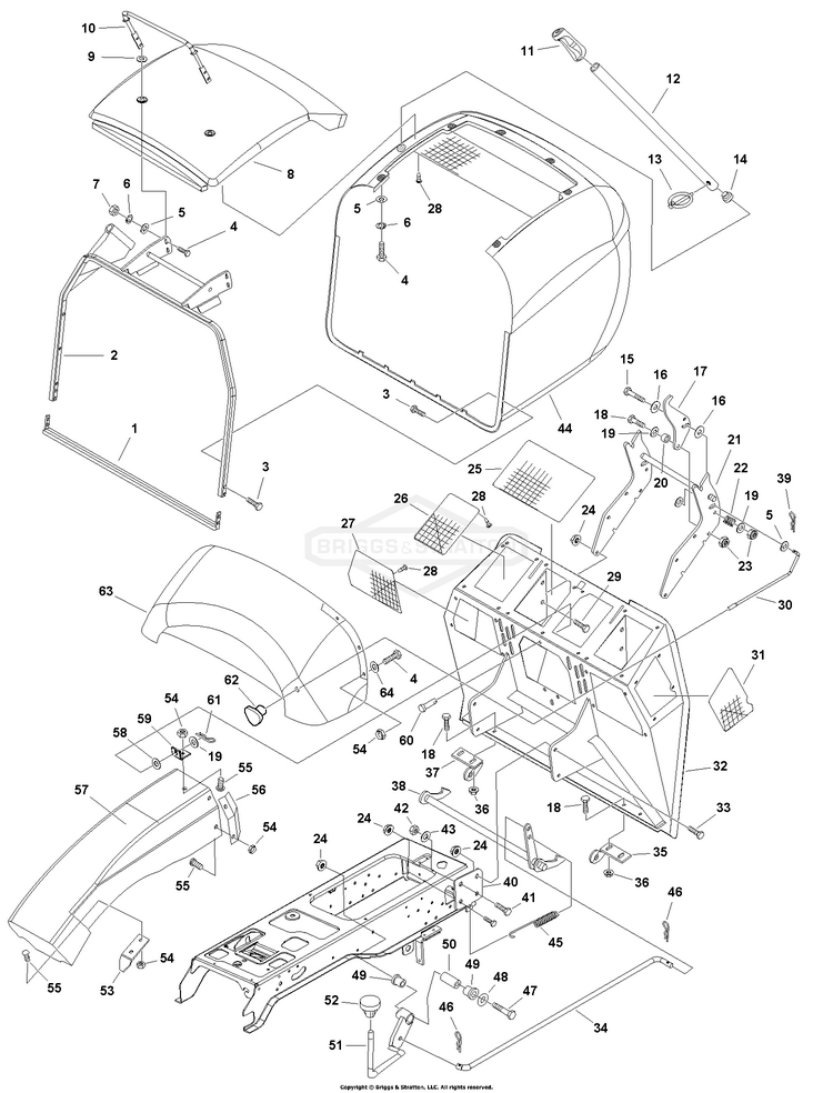 Zeichnung Snapper 2690073 - YT1840, 40" 18 HP Hydro Drive Rear Discharge Tractor aus der Zeichnungsgruppe Hopper Group - Serviceable Screen: