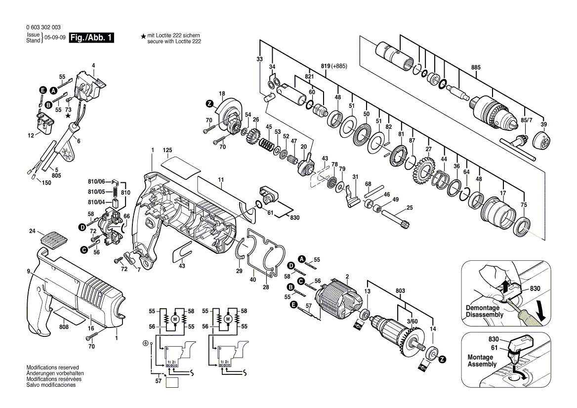 Zeichnungen von Bosch Hw-Bohrhammer PBH 1 mit der Geräte-Artikelnummer 0 603 302 003