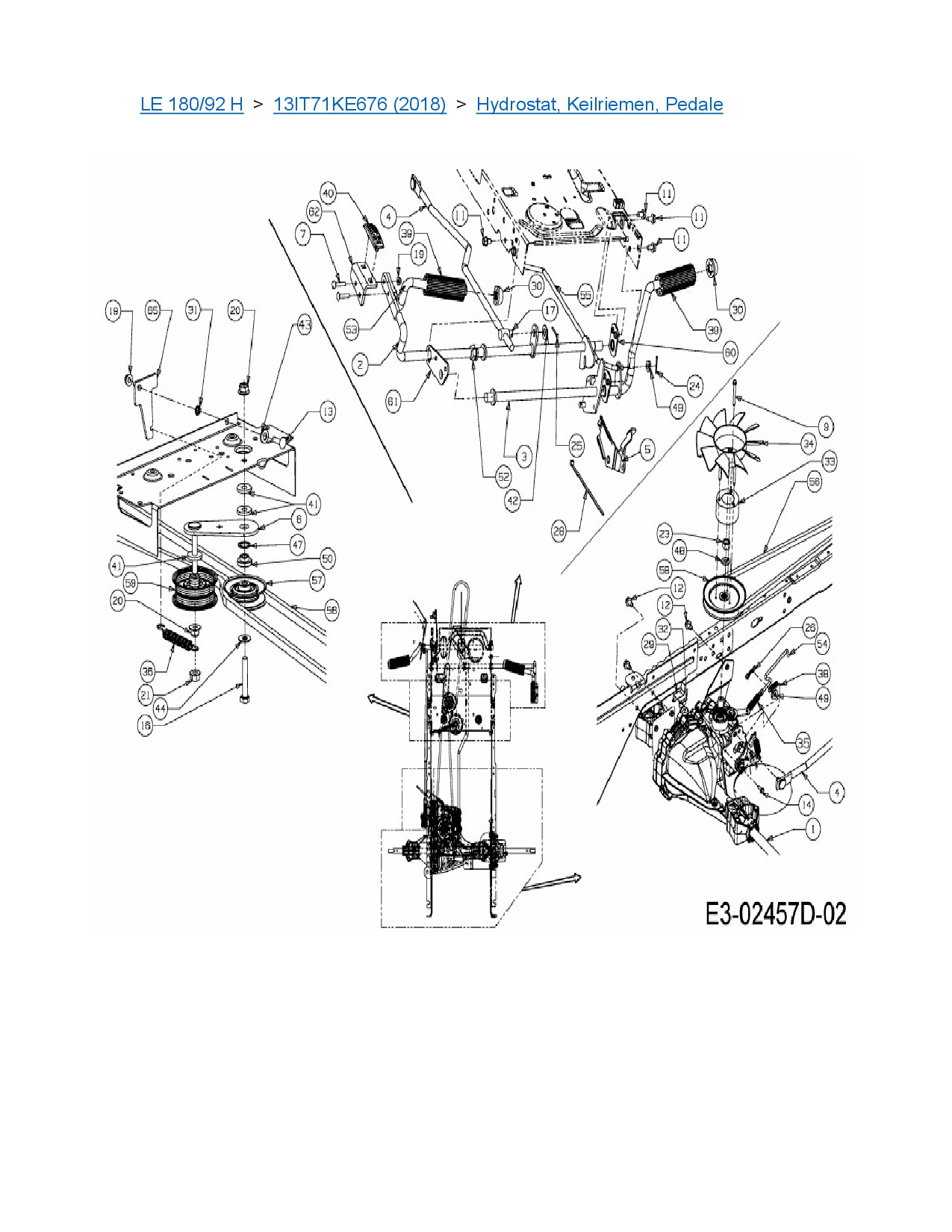 Ersatzteile für Rasentraktor MTD LE 180/92 H aus der Zeichnung Hydrostat, Keilriemen, Pedale: