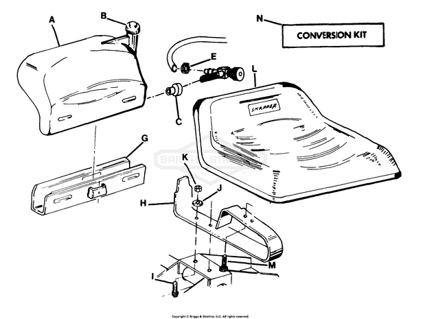 Zeichnung Snapper 89396 - 25083S, 25" 8 HP Rear Engine Rider Series 3 - Zeichnungsgruppe Inboard Fuel Tank - Operator's Seat: